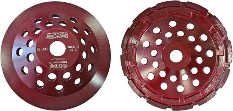 Алмазная двухрядная чашка Messer DeLuxe (Мессер ДеЛюкс) предназначена для шлифовки бетона, гранита как с подачей охлаждающей жидкости так и без нее.