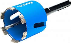 - Возможно использование с центровочным твердосплавным сверлом и различными переходниками (М16 – Шестигранник, М16 – SDS-Plus, М16 – SDS-Max)
