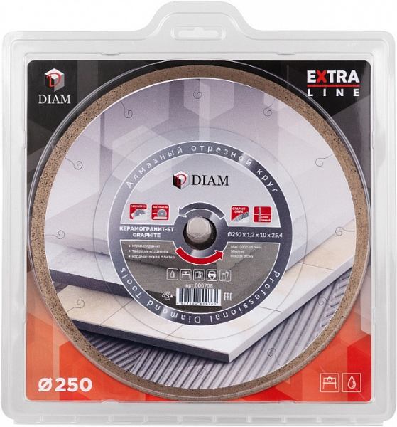 Цена и технические характеристики алмазного отрезного круга Diam Extra Line 1A1R Корона Керамогранит-ST Graphite 250 мм: