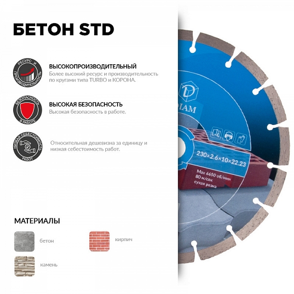 Цена и технические характеристики алмазного отрезного круга Diam STD 1A1RSS Бетон 230 мм: