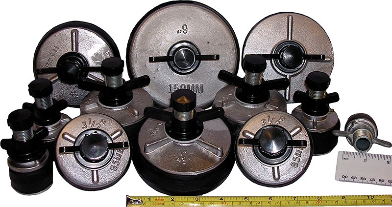 Алюминиевые заглушки для труб Huntingdon Fusion Techniques PSP3125 (Хантингдон Фьюжин Текникс ПСП3125) – проходные металлические заглушки для труб Ø 125 – 142 мм, давлением до 0,7 бар (10 psi) для перекрытия трубопроводов и канализации при ремонте и сварке; гидроиспытаний; продувки при сварке труб в инертной среде; ремонта и монтажа труб и трубопроводов; обслуживания и ремонта воздуховодов; тестирования автомобильных радиаторов; предотвращения проникновения грязи, грызунов, насекомых.