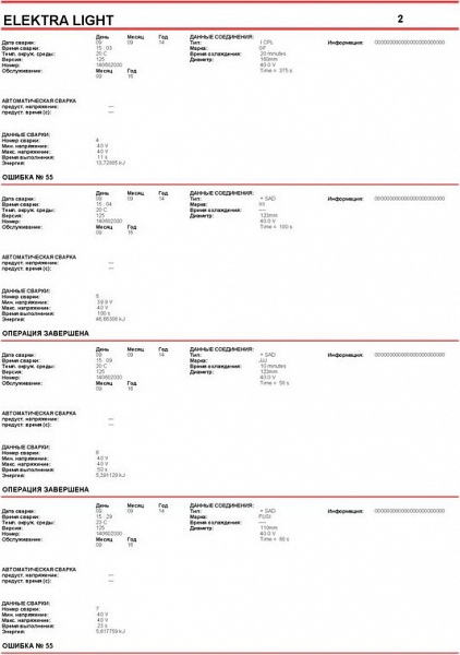 - Протоколирует сварочный процесс и имеет память на 350 протоколов