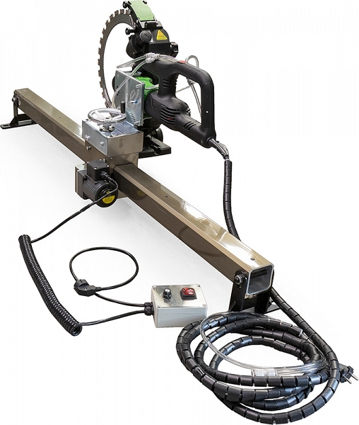- Стабильность и качество реза: электрическая подача обеспечивает постоянную, скорость перемещения кольцереза; в сочетании с модернизированным приводом Diamaster Titan-400 V2 (зубчатое зацепление) это гарантирует идеальный прямолинейный рез даже на максимальной глубине