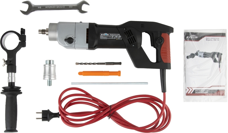 Бесщеточная дрель для сухого алмазного сверления с микроударом Bycon DB-132 (Байкон ДБ-132) – алмазная дрель с микроударом для сухого алмазного бурения отверстий Ø 10 – 102 мм в бетоне, железобетоне, "легком" бетоне, шлакобетоне, кирпиче и других особенно твердых материалах при высокой рабочей скорости; как с использованием станины, так и "с рук"; для профессионального использования. Отличный вариант как для монтажников кондиционеров, так и для электриков. С дополнительными переходниками позволяет работать как алмазными коронками стандартной длины, так и коронками для подрозетников.