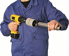- Встроенные шестигранные захваты для электрического привода от Хеликс и других дрелей-отверток с креплением для битов 1/4" (скорость вращения ≤ 300 об/мин), от труборезного станка Центо или от труборезного станка Турбо Cu-Inox (патент EP 2 058 067)