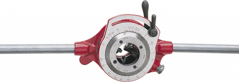 Клупп ручной настраиваемый для нарезки резьбы Virax 1 1/2"-2", 2 1/2"-3" BSPT Правая (Виракс 1 1/2"-2", 2 1/2"-3" БСПТ Правая) предназначен для высокопроизводительной нарезки правой конической резьбы на стальных трубах Ø 1 1/2" – 2", 2 1/2" – 3" (40/49 – 50/60, 66/76 – 80/90 мм).