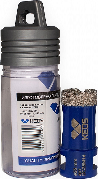 Цена и технические характеристики коронки алмазной по керамограниту Keos Professional Vacuum Brazed M14 25 мм: