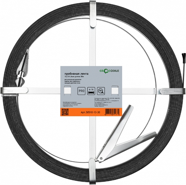 Лента пробивная сантехническая Crocodile 30 м × 19 мм × 1,6 мм (Крокодил 30 m × 19 mm × 1,6 mm) – канализационная лента для прочистки сложных засоров, самый надежный ручной инструмент для удаления засоров в прямых трубах Ø до 110 мм, длиной до 30 м. Эффективно передает удар оператора на спрессованный ил, щебень, камни, стекло и пластик.