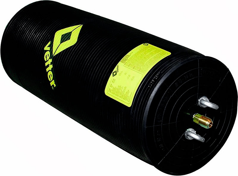 Маслостойкая химостойкая цилиндрическая пневмозаглушка для труб Vetter RDK 60/120 CR (Веттер РДК 60/120 ЦР) – многоразмерная пневматическая заглушка для перекрытия трубопроводов Ø 600 – 1200 мм (24" – 48") в тех случаях, когда необходима повышенная устойчивость, например, против масел и топливных материалов на нефтеперегонных заводах в нефтепроводах или трубах, предполагающих контакт с маслом и консистентной смазкой.