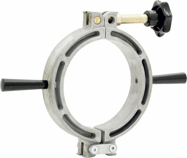 - Прочный, легкий и простой в использовании зажим с шарнирным воротником для закругления (удаления овальности) полиэтиленовых труб перед процессом сварки, изготовлен из литого алюминия и оснащен 2-мя ручками, которые помогают перемещать по трубе