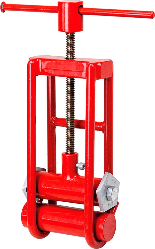 - Медленно вращайте шпиндель устройства вниз до тех пор, пока труба не будет передавлена