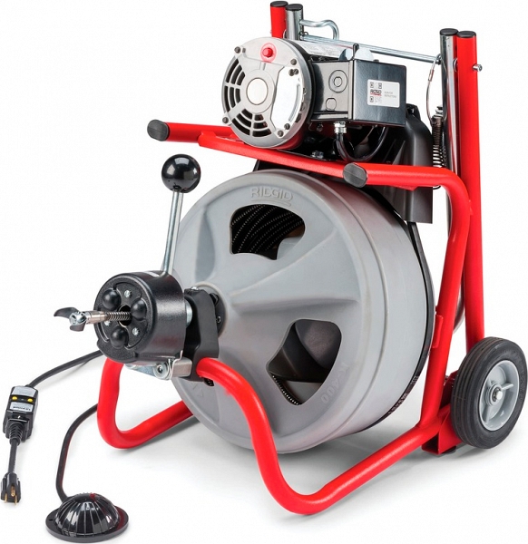 Электрическая прочистная машина барабанного типа Ridgid K-400 и K-400 AF (Риджид К-400 и К-400 АФ) с автоподачей двунаправленного действия Autofeed предназначена для прочистки сточных / канализационых труб Ø 30 – 110 мм (1 1/2" – 4") на длину до 30 м.