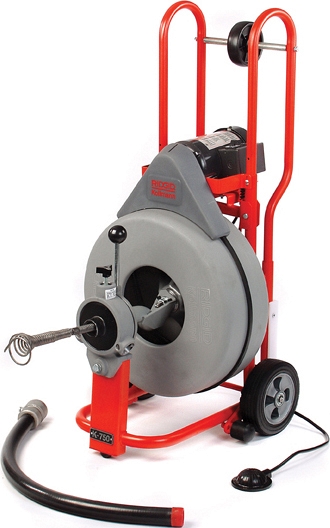 Электрическая прочистная машина барабанного типа Ridgid K-750 (Риджид К-750) предназначена для прочистки сточных / канализационных труб Ø 75 – 200 мм (3" – 8") на длину до 62 м.