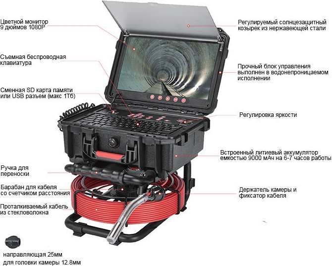 Преимущества проталкиваемойтелеинспекционной системы Rotorica Pipe Eye 30/129: