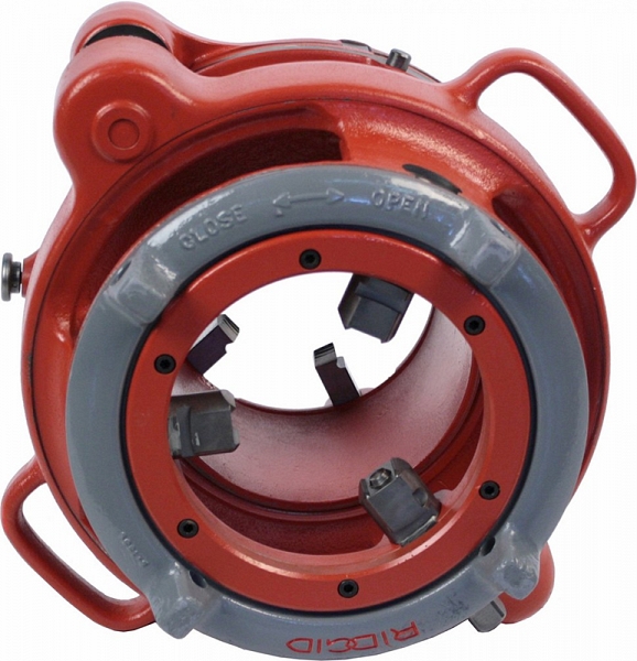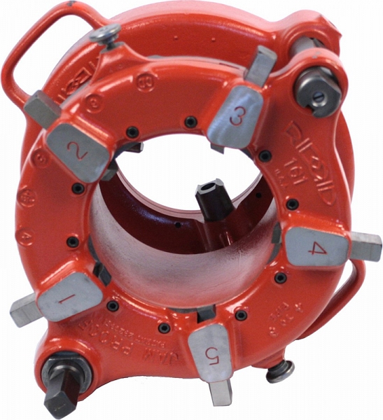 Резьбонарезная голова со ступенчатой регулировкой Ridgid 161 NPT R (Риджид 161 НПТ Р) с комплектом быстрорежущих резьбонарезных гребенок High-Speed (HS) предназначена для нарезки правой трубной конической резьбы NPT R на трубах Ø 4" – 6" на резьбонарезных станках Ridgid 300, 535, 535А, 1224 и электрическом резьбонарезном клуппе Ridgid 700, а также других производителей, в промышленном секторе.
