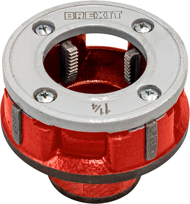 Резьбонарезная головка для электрического клуппа Brexit BSPT R SS 2" (Брексит БСПТ Р СС 2") предназначена для нарезки правой трубной конической резьбы BSPT R на стандартных черных стальных водопроводных и газопроводных трубах Ø 2". Подходит к электрическим резьбонарезным клуппам Brexit, а также других производителей (совместимость обязательно уточняйте у специалистов!).