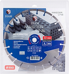 Сегментный алмазный круг Diam Master Line 1A1RSS Железобетон 350 мм (Диам Мастер Лайн 1А1РСС Железобетон 350 мм) – профессиональный алмазный отрезной диск для сухой и мокрой резки бетона, армированного бетона (железобетона), тротуарной плитки, кирпича, клинкера, огнеупоров и других строительных материалов, схожих по характеристикам, на бензорезах, электрических резчиках, камнерезных станках, стенорезных машинах, швонарезчиках и другом оборудовании, с подачей и без подачи воды.