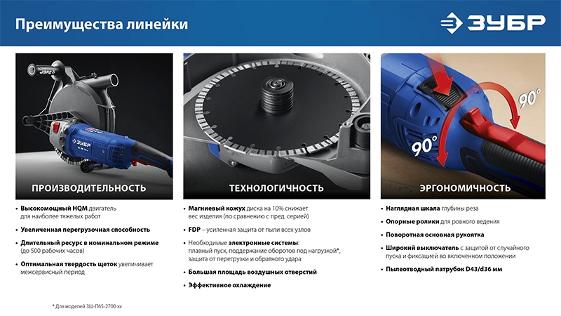 Преимущества штробореза Зубр Профессионал ЗШ-П45-2200 ПТК: