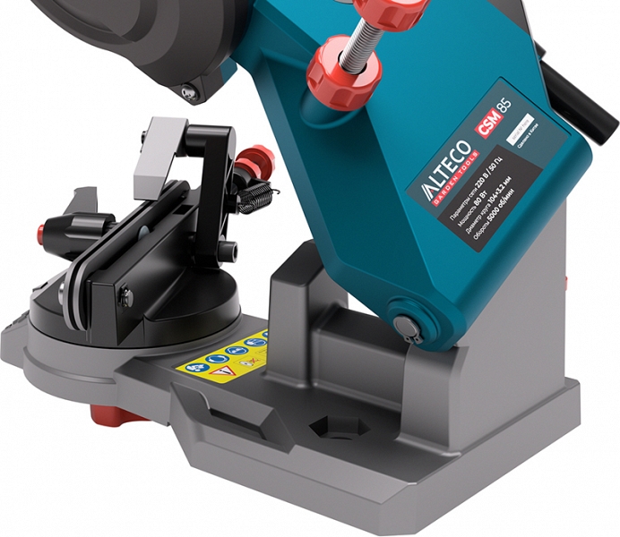 Станок для заточки цепей Alteco CSM 85 (Алтеко ЦСМ 85) предназначен для для заточки зубьев цепей бензопил, обеспечивает быстрое и точное восстановление остроты зубьев цепи, что важно для эффективной работы и безопасности при использовании бензопилы.