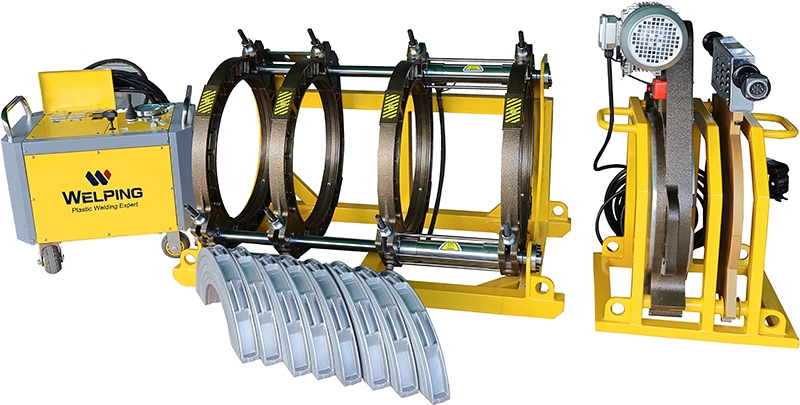 Стыковой сварочный аппарат Welping WP500A (Велпинг ВП500А) – полуавтоматическая электрогидравлическая стыковая сварочная машина для сварки пластиковых (ПЭ (полиэтиленовых), ПП (полипропиленовых), ПВДФ (поливинилиденфторидовых) / PE, PP, PVDF) труб Ø 280, 315, 355, 400, 450, 500 мм на стройплощадках, в полевых условиях и цехах при прокладке дренажных труб и водопроводных магистралей.