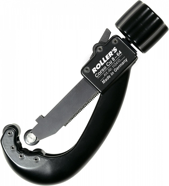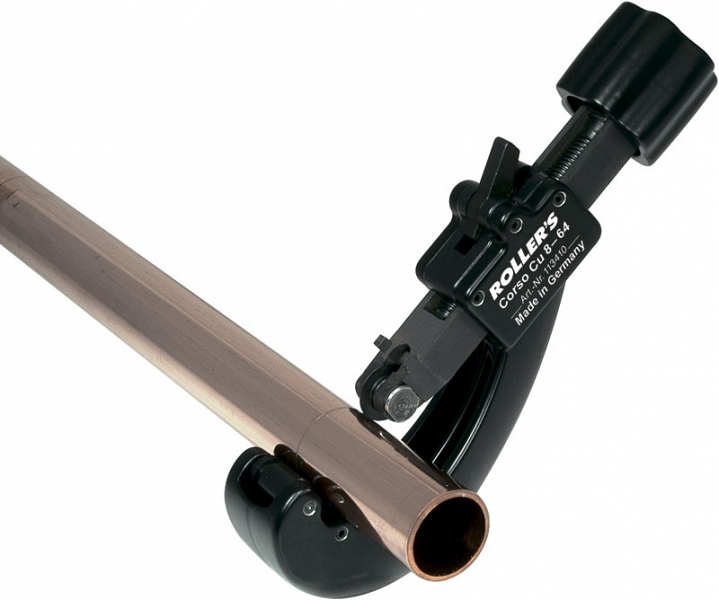 Труборез для медных труб Roller Corso Cu 8-64 (Роллер Корсо Ку 8-64) с быстрым переставлением предназначен для резки медных труб Ø 8 – 64 мм (3/8" – 2 1/2"), толщиной стенки до 3 мм.
