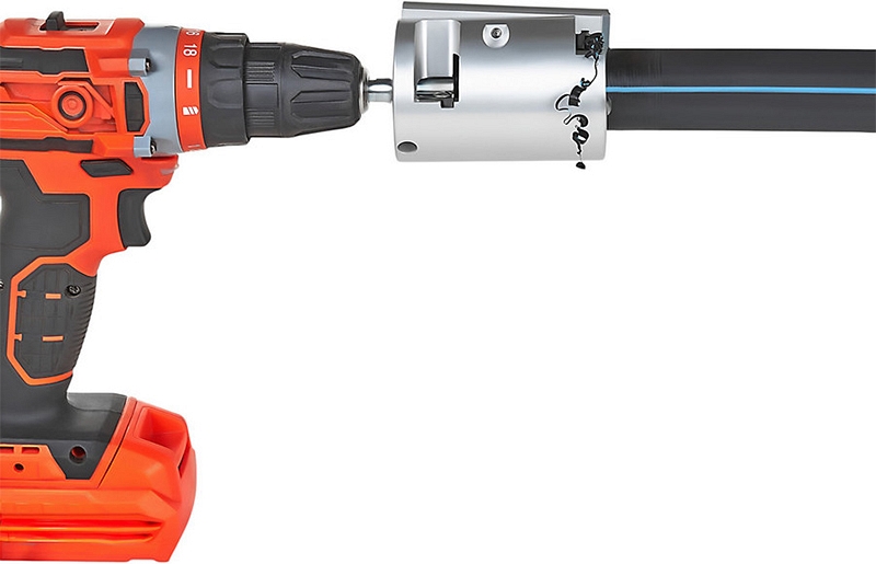 Устройство для снятия оксидного слоя с полиэтиленовых труб Gas Fusion УСО-63 (Газ Фьюжин USO-63) – скребок под дрель или шуруповерт для эффективной зачистки полиэтиленовых (пэ, пнд) труб Ø 63 мм перед муфтовой раструбной и электромуфтовой сваркой в стесненных условиях ограниченного пространства.